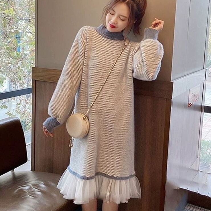 ワンピース ミディアム丈ワンピース 長袖 ボリューム袖 ハイネック 裾フリル レース 異素材ミックス かわいい 大人可愛い きれいめ シンプル 上品 おしゃれ レトロ かっこいい カジュアル こなれ感 個性的 主役級 存在感 抜け感 ベーシック ナチュラル キュート ガーリー 無地 女性用 レディース ママ OL 通勤 学生 通学 デート お出かけ お泊まり 女子会 旅行 休日 カフェ ショッピング コンパ 普段使い デイリー イベント 着回し 重ね着 脚長 M L XL 2XL トレンド モテ