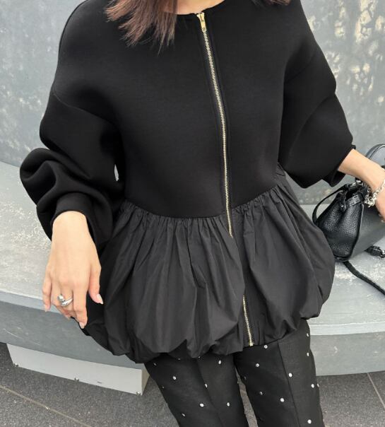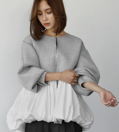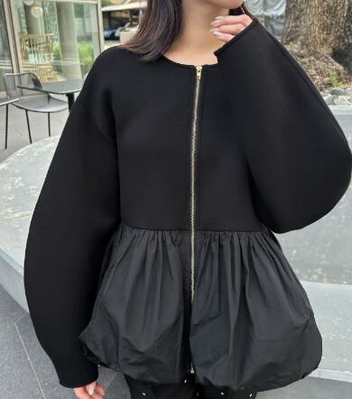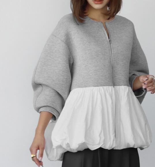 レディース ジャケット アウター 上着 長袖 クルーネック 襟なし ノーカラー ワイド バルーン 前開き 切り替えデザイン バイカラー 大人可愛い きれいめ シンプル カジュアル 上品 おしゃれ こなれ感 ラフ 個性的 モード系 モダン 主役級 存在感 都会的 ベーシック ナチュラル 無地 秋 冬 ロングシーズン デート お出かけ 女子会 カフェ モノトーン 普段使い 着回し モテ 清楚 トレンド 流行 インスタ映え 定番 ゆったり フリーサイズ ワンサイズ ブラック グレー ベーシックカラー 大人カラー
