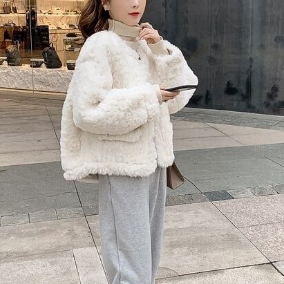 こちらのショート丈コートは、ラウンドネックと前開きデザインで、シンプルながらも大人可愛い雰囲気を演出します。