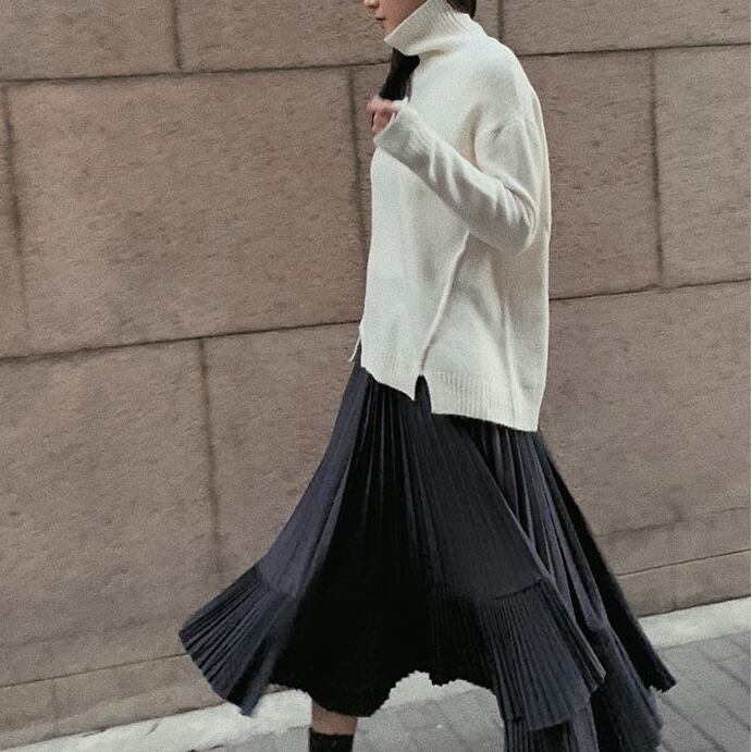 大人かわいいスタイルを演出するアシンメトリースカート