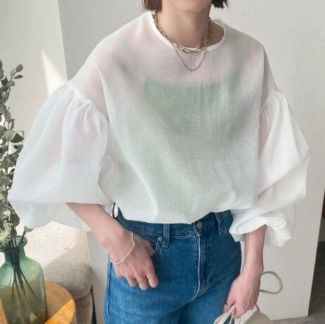バルーン袖が華やかさを添える長袖カットソーは、シンプルながらも存在感のある主役級アイテム。