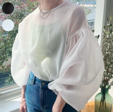 レディース トップス カットソー 長袖 バルーン袖 クルーネック 襟なし ワイド フェミニン 薄手 シアー 大人可愛い きれいめ シンプル カジュアル 上品 おしゃれ こなれ感 ラフ エレガント モダン 主役級 存在感 都会的 ベーシック ナチュラル 無地 春 夏 デート お出かけ 女子会 ショッピング カフェ モノトーン 重ね着 普段使い 着回し モテ 清楚 トレンド 流行 インスタ映え 定番 ゆったり フリーサイズ ワンサイズ ホワイト ブラック ベーシックカラー 大人カラー