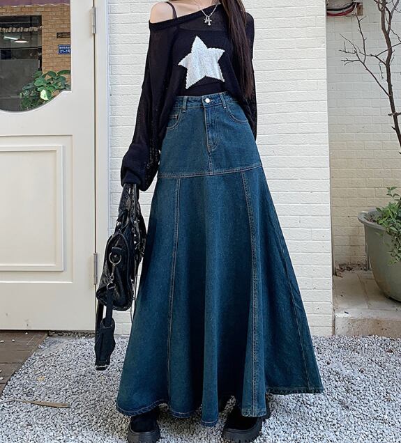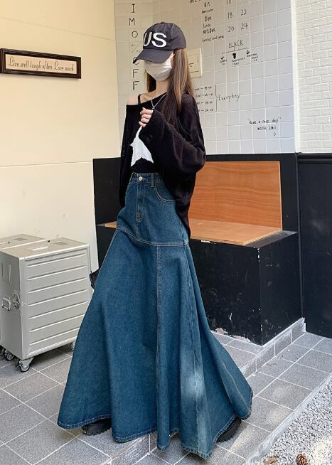 レディース デニム デニムスカート ロング ワイド Aライン デニム ブルーデニム かわいい 大人可愛い シンプル カジュアル 上品 おしゃれ レトロ 個性的 アクティブ 無地 夏 デート お出かけ レストラン 公園 女子会 休日 ホテル ガーデン ショッピング カフェ 韓国 オルチャン 体型カバー 普段使い 着回し 清楚 定番 XS S M L XL 2XL レトロブルー