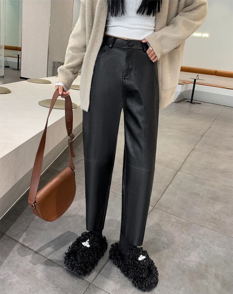 大人可愛いレザーパンツが登場!スリムなシルエットとストレートラインが魅力のこのパンツは、ハイウエストデザインが脚長効果を引き出し、スタイリッシュな印象を与えます。普段使いからデート、さらにオフィスカジュアルや休日のお出かけまで、幅広いシーンに活躍してくれる一枚です。