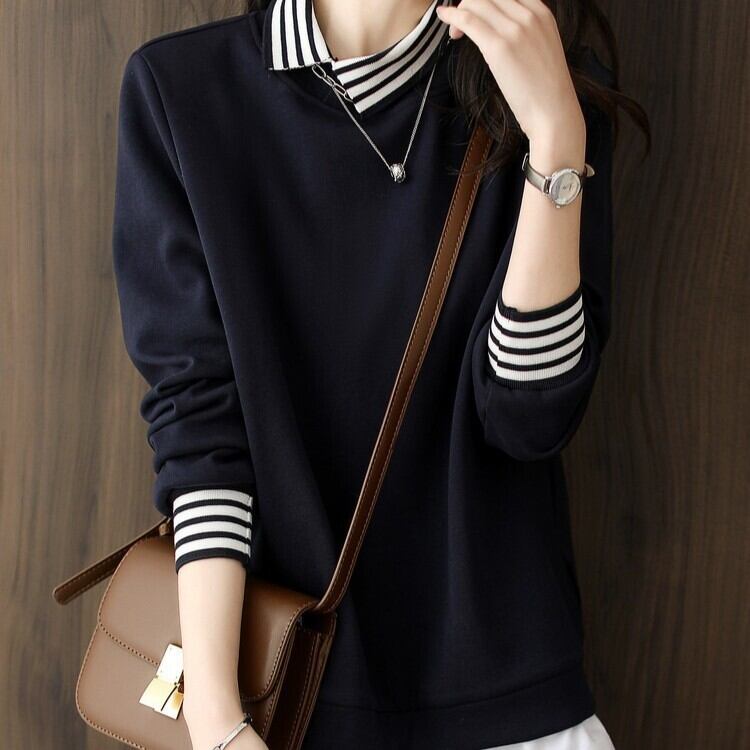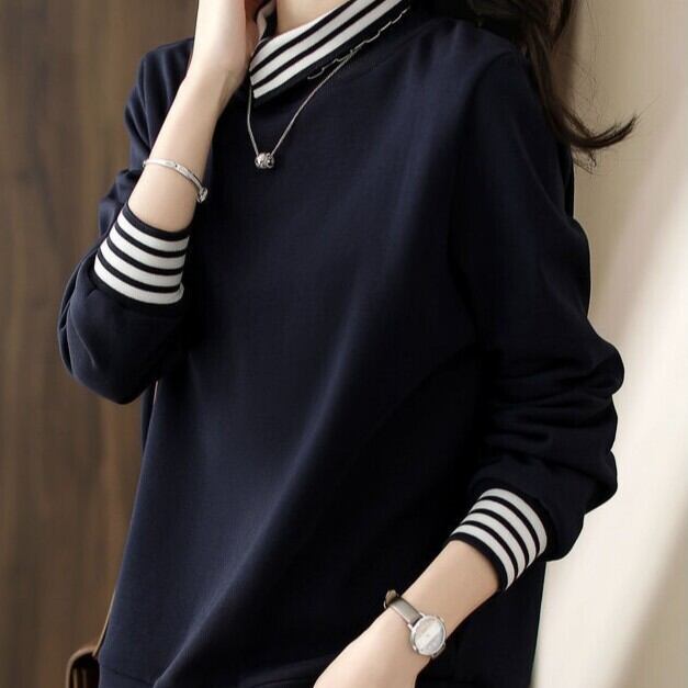 クラシックな襟付きデザインが特徴のこの長袖シャツは、スリムなシルエットでスタイリッシュな印象を与えつつ、カジュアルにもきれいめにも着こなせるアイテムです。春や秋のお出かけや通勤スタイルにぴったりで、デートや女子会にも活躍します。無地のネイビーが、様々なコーディネートに柔軟に合わせられるので、着回しが楽しめる一枚です。