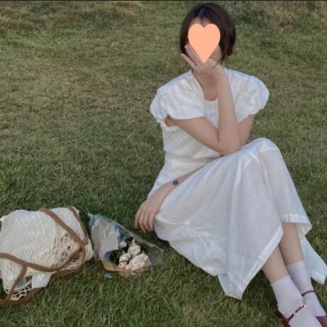 背中のリボンデザインとパフスリーブがポイントの清楚で高見えする白ワンピース。