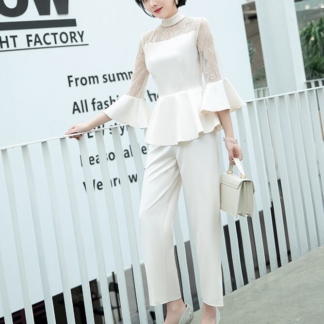 ドレス 2点セット セットアップ トップス 7分袖 ハイネック プルオーバー ショート丈 ペプラム アンクル丈パンツ ストレート ハイウエスト 刺繡 シースルー ステージドレス 発表会 かわいい 大人可愛い きれいめ シンプル 上品 おしゃれ かっこいい レトロ こなれ感 個性的 主役級 存在感 抜け感 オールシーズン シーズンレス エレガント キュート 華やか ゴージャス 無地 レディース 女性用 ママ 結婚式 披露宴 パーティー イベント 脚長 XS S M L XL 2XL 3XL トレンド モテ