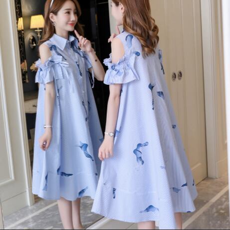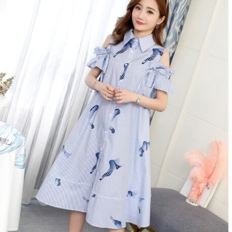 レディース ワンピース シャツワンピ 前開き 膝下 ミモレ 半袖 オープンショルダー フリル袖 オフショルダー 襟付き Aライン フェミニン フリル リボン コットン かわいい 大人可愛い カジュアル 上品 おしゃれ こなれ感 ガーリー 主役級 抜け感 ラブリー キュート ナチュラル 爽やか ストライプ プリント 春 夏 秋 ロングシーズン ママ マタニティ リゾート 旅行 カフェ 韓国 コーデ 楽ちん 体型カバー 普段使い トレンド インスタ映え M L XL 2XL ゆったり ゆる ブルーストライプ