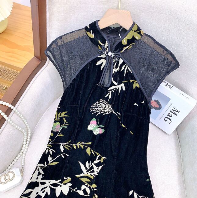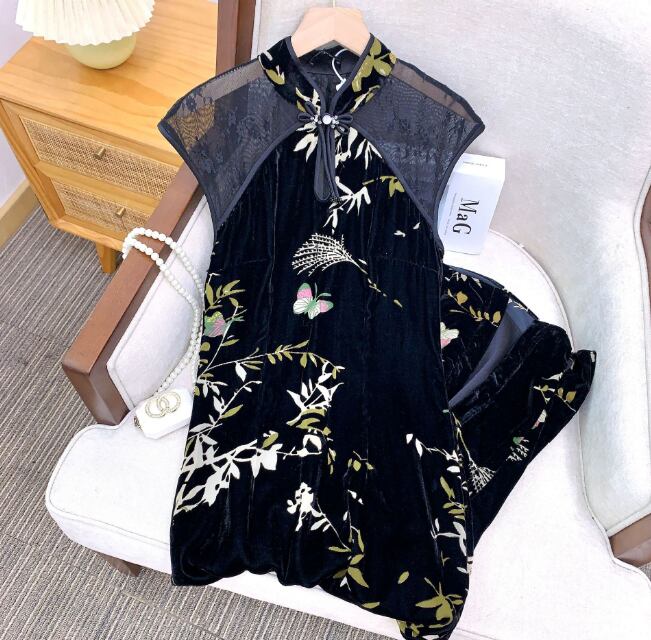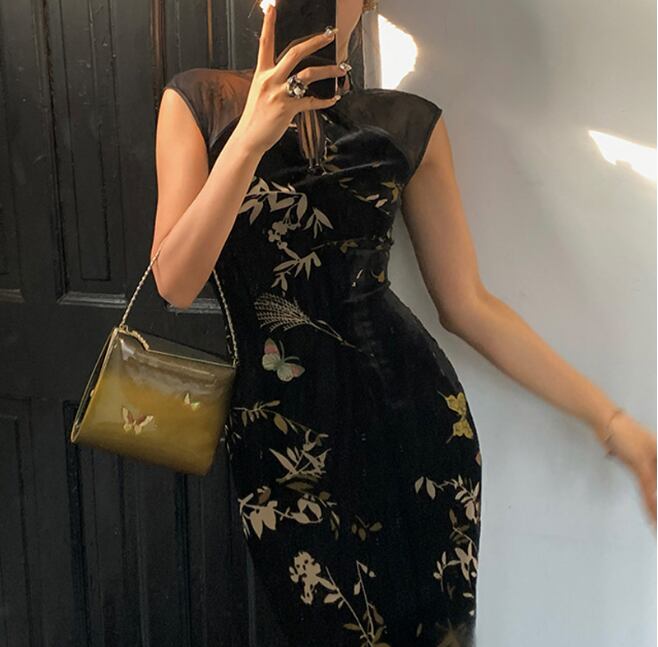 レディース ワンピース ドレス ミモレ 袖なし ノースリーブ ハイネック 襟付き タイト スリム 細身 スリット 透け感 シースルー 厚手 きれいめ 上品 おしゃれ かっこいい アジアン エスニック エキゾチック こなれ感 個性的 モダン 主役級 存在感 都会的 ベーシック ロマンティック 花柄 フラワー 秋 冬 ロングシーズン デート お出かけ パーティー イベント レストラン モテ トレンド 流行 インスタ映え 定番 スタイルアップ XS S M L ブラック ベーシックカラー 大人カラー