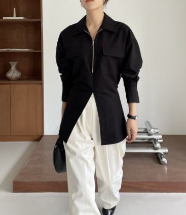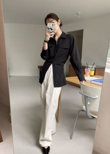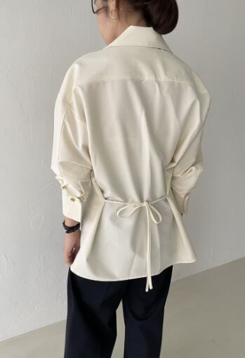 レディース シャツ 長袖 襟付き 角襟 スリム バックリボン 大人可愛い きれいめ シンプル カジュアル 上品 おしゃれ かっこいい こなれ感 クール 無地 夏 冬 韓国 オルチャン 体型カバー 普段使い 着回し モテ 定番 フリーサイズ ワンサイズ 白 黒