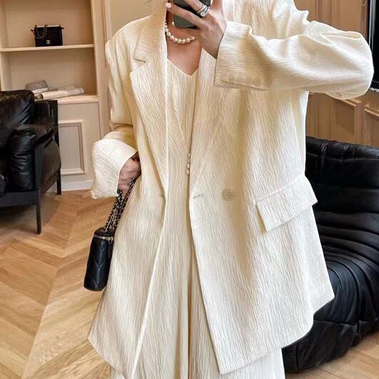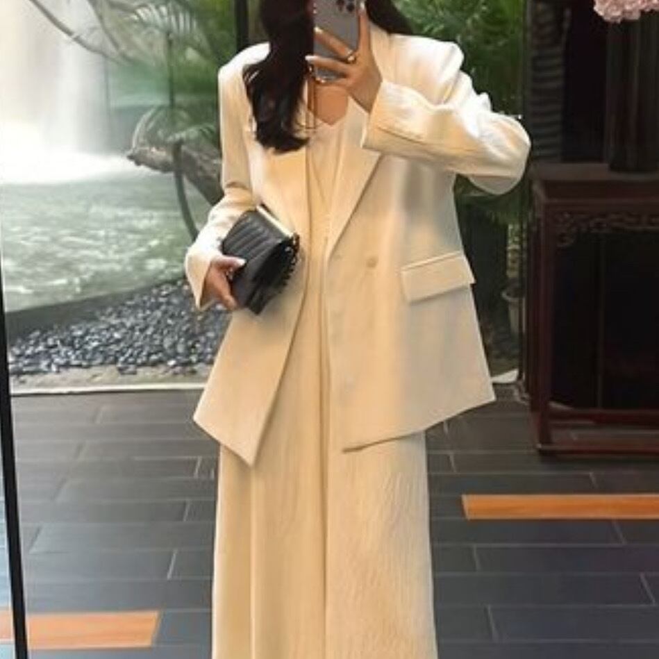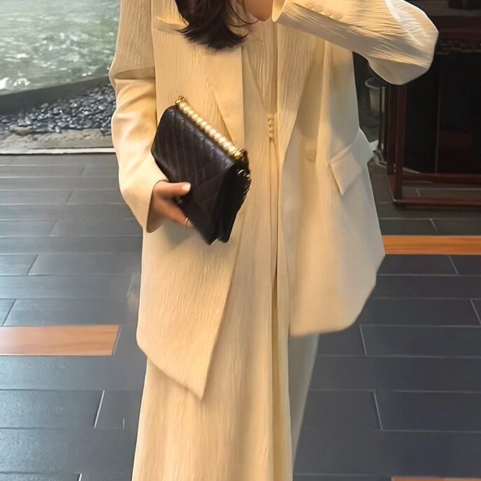 エレガントな雰囲気を演出する、ワンピーススーツセットアップ。