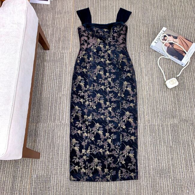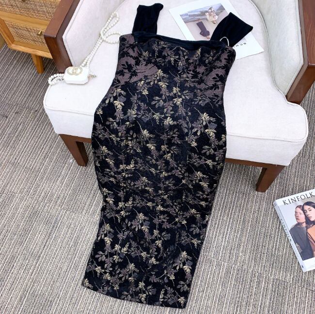 レディース ワンピース パーティードレス ミモレ 袖なし スクエアネック 襟なし タイト スリム 細身 背中開き フェミニン きれいめ 上品 おしゃれ かっこいい アジアン エスニック エキゾチック こなれ感 個性的 モダン 主役級 存在感 都会的 ベーシック ロマンティック 花柄 フラワー 秋 冬 ロングシーズン デート お出かけ パーティー イベント レストラン モテ トレンド 流行 インスタ映え 定番 スタイルアップ XS S M L サイズ豊富 ブラック ベーシックカラー 大人カラー