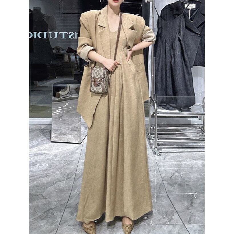 レディース スカート トップス ジャケット ワンピース スーツ セットアップ アンサンブル 上着 ロング マキシ ミディアム丈 袖なし ノースリーブ 長袖 Vネック 襟付き フレア Aライン ドレープ ポケット ボタン シボ感 きれいめ シンプル 上品 おしゃれ エレガント 主役級 無地 春 秋 結婚式 20代 30代 40代 オフィス OL 通勤 デート お出かけ パーティー レストラン ホテル ショッピング コーデ 着回し S M L XL 2XL 3XL 4XL 5XL 黒 ブラック ゴールド 光沢