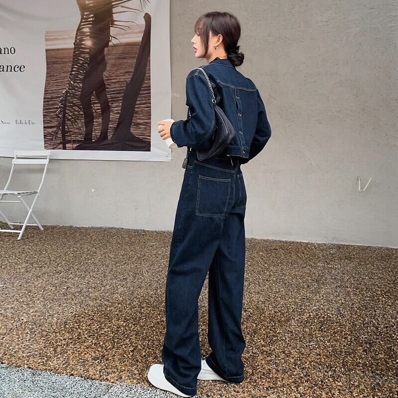 大人可愛いスタイルを楽しむ!レディースジャケットパンツデニムツーピース