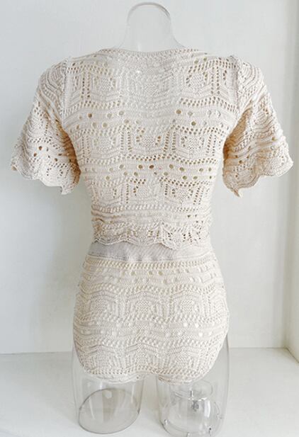 水着 レディース タンキニ 体型カバー セパレート 半袖 カバーアップ レース 刺繍 編み込み 上下セット 大人可愛い カジュアル ナチュラル おしゃれ レトロ 存在感 フェミニン スパンデックス ハイウエスト 無地 リゾート 旅行 温泉 プール 夏 海 体型カバー M L XL ベージュ
