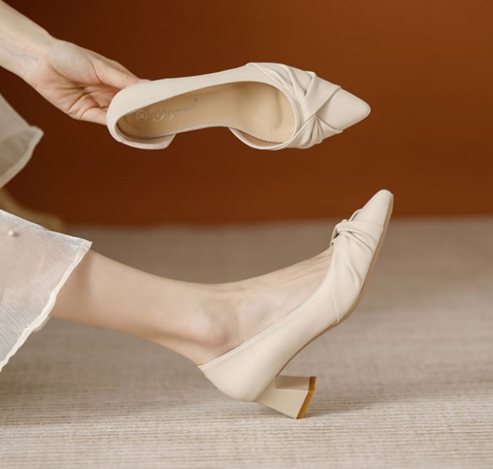 上品でエレガントな印象を与えるレディースパンプスです。ポインテッドトゥのデザインは、足元を美しく見せ、通勤やビジネスシーンだけでなく、休日のお出かけやパーティーにもぴったりです。4.5cmのヒールは程よい高さで、長時間の着用でも疲れにくく、コーディネートにも合わせやすい無地のベージュカラーです。存在感のある一足で、足元から自信を持っておしゃれを楽しめます。