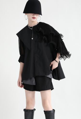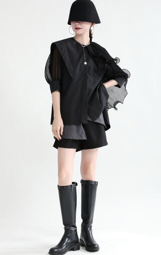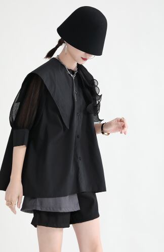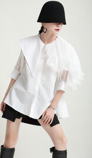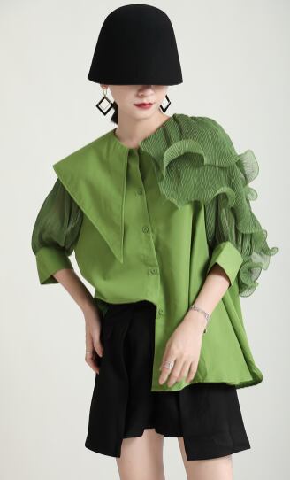レディース トップス ブラウス 5分袖 パフスリーブ Uネック 襟付き フリル コットン ポリエステル かわいい 大人可愛い きれいめ シンプル 上品 おしゃれ かっこいい レトロ こなれ感 個性的 クール モード系 エレガント 主役級 存在感 無地 春 夏 秋 デート お出かけ レストラン 女子会 休日 ホテル お花見 カフェ 体型カバー 定番 S M L 白 黒 緑