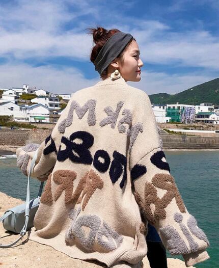 レディース トップス ニット セーター カーディガン アウター 上着 羽織 長袖 ワイド オーバーサイズ もこもこ ふわふわ ポリエステル かわいい カジュアル おしゃれ こなれ感 ラフ ルーズ 主役級 存在感 アルファベット 秋 冬 お出かけ お泊まり 公園 休日 カフェ 楽ちん 暖かい 体型カバー 普段使い フリーサイズ ワンサイズ カーキ 赤 ネイビーブルー