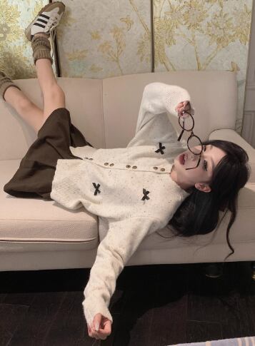 レディース トップス ブラウス カーディガン 長袖 Uネック 前開き アクリル かわいい きれいめ シンプル 上品 おしゃれ レトロ エレガント ラブリー キュート ナチュラル 無地 リボン 春 秋 デート お出かけ 女子会 休日 ショッピング お花見 カフェ 普段使い モテ 清楚 定番 フリーサイズ ワンサイズ オートミール