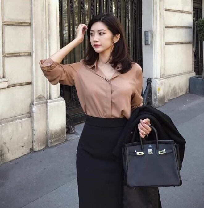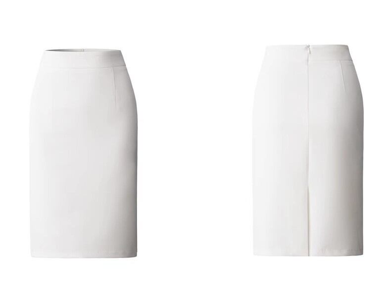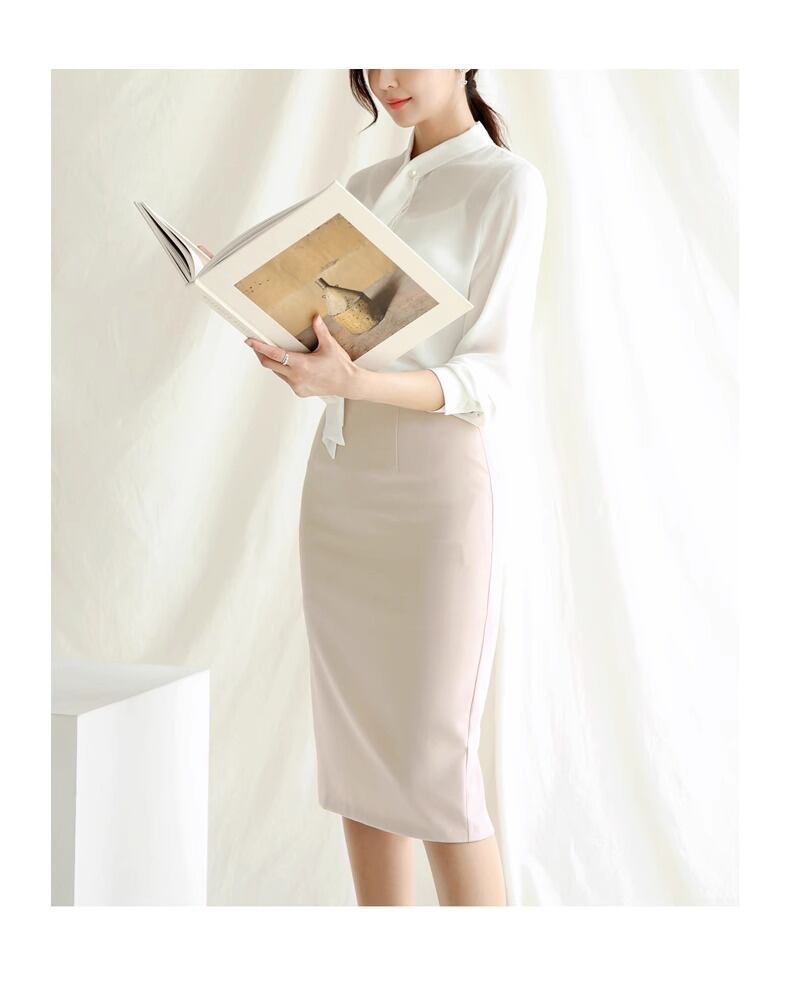 女性らしいシルエットを引き立てる膝丈タイトスカートです。Iラインデザインがすっきりとした印象を与え、上品さと清楚さを兼ね備えています。シンプルな無地デザインなので、カジュアルからオフィススタイルまで幅広く対応できます。