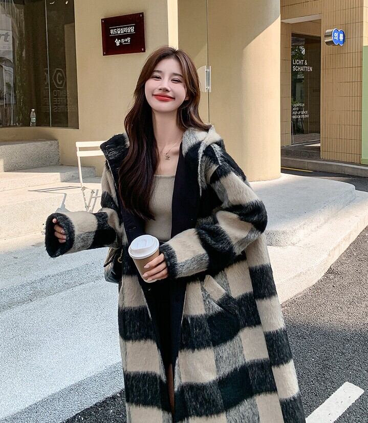ふんわりとした風合いが魅力のチェック柄ロングコートです。オーバーサイズシルエットとボリューム袖がトレンド感を演出し、羽織るだけでこなれたおしゃれスタイルに仕上がります。襟なしデザインで首元はすっきり、マフラーやタートルネックとも好相性です。