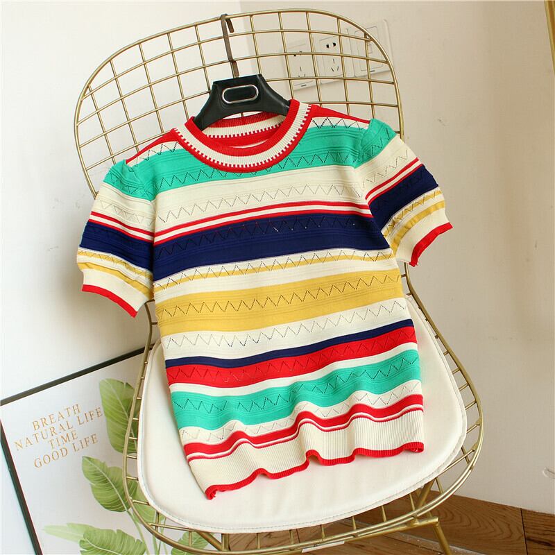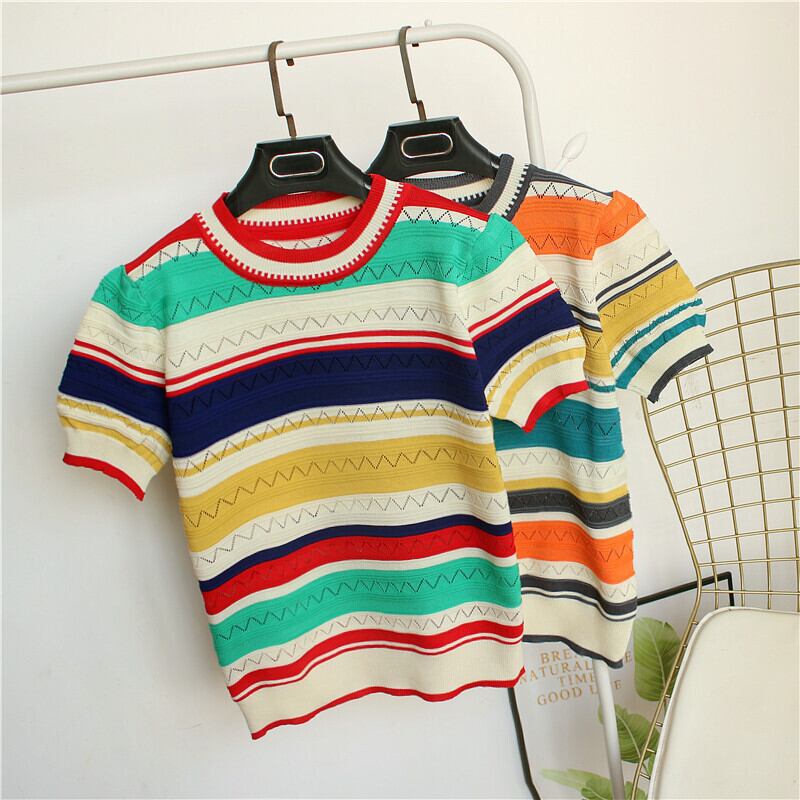 レディース ニット セーター レギュラー丈 半袖 パフスリーブ クルーネック ストレート リブ 透け感 ニット アイスシルク カジュアル おしゃれ レトロ 個性的 存在感 ストライプ 春 夏 秋 ロングシーズン オフィス ビジネス OL 通勤 デート お出かけ アウトドア キャンプ イベント リゾート 旅行 海 プール ビーチ 公園 女子会 休日 バカンス ガーデン ショッピング カフェ 普段使い ワンサイズ オレンジ グリーン