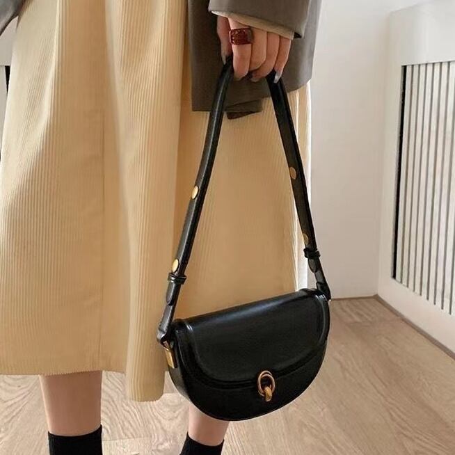 大人可愛いデザインの半円形ショルダーバッグ