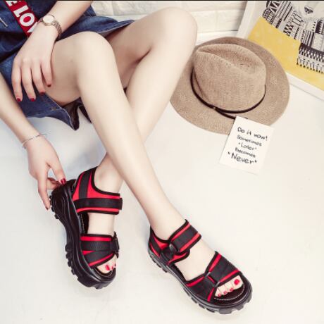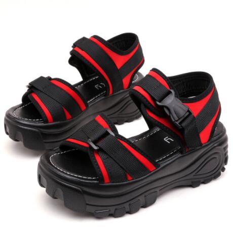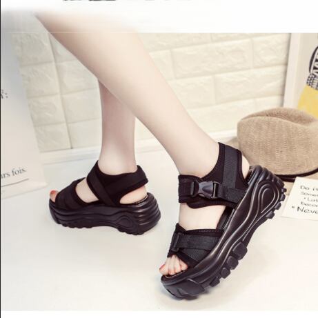 厚底6cm×ベルクロストラップで脚長効果と安定感を両立したスポーツサンダル。