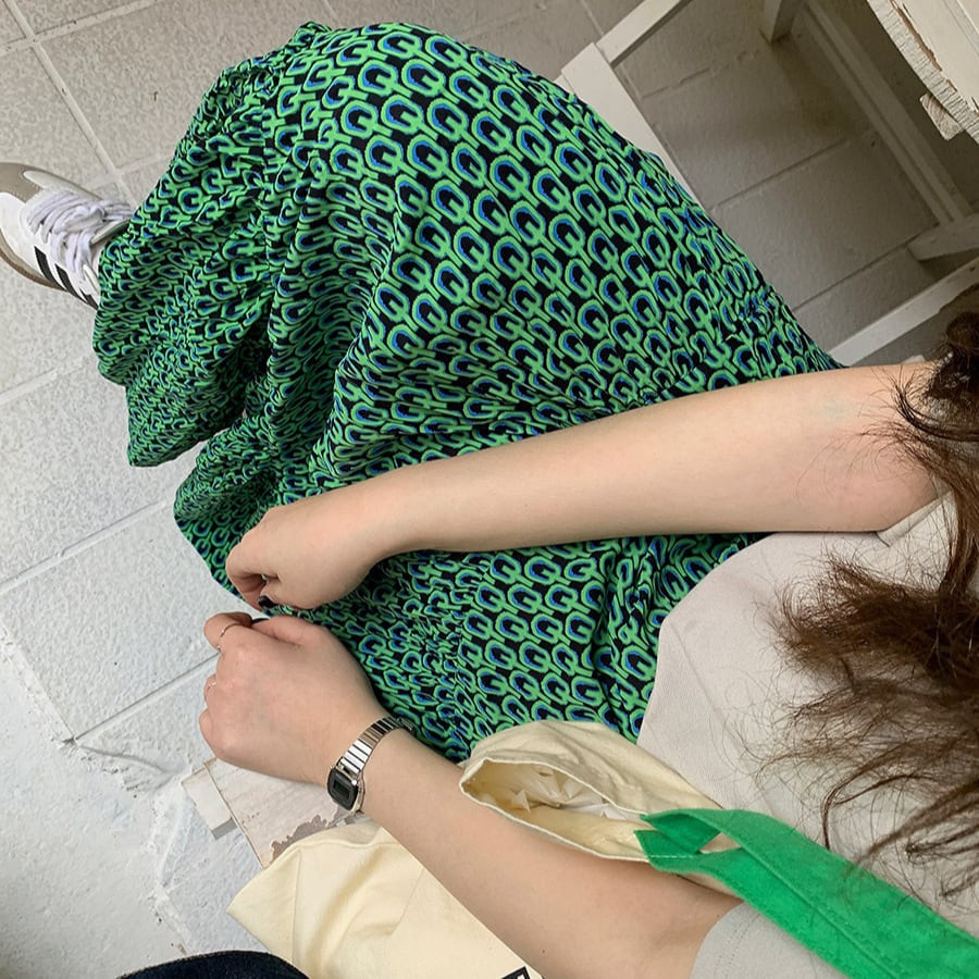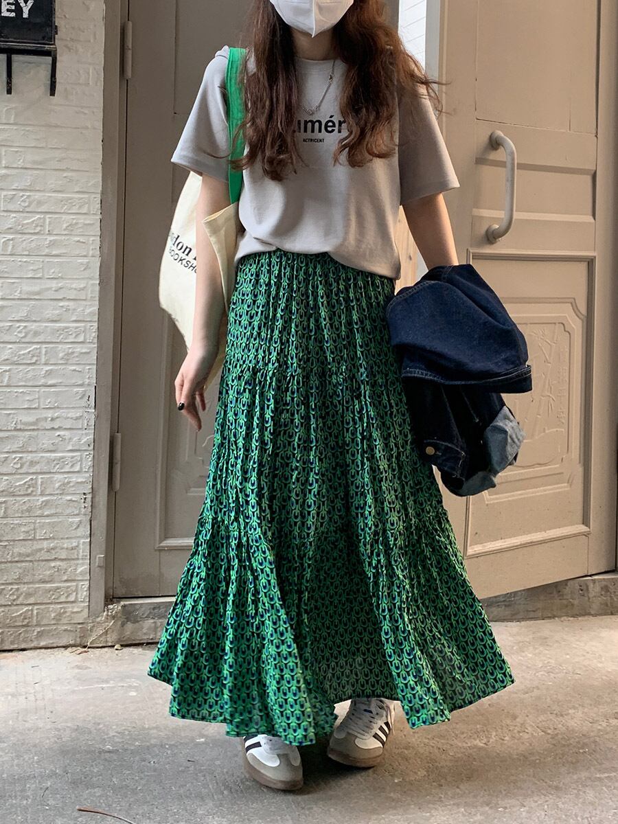 レディース スカート ロングスカート ロング スリム Aライン ストリート プリーツ 薄手 ポリエステル繊維 シフォン カジュアル おしゃれ レトロ 個性的 存在感 幾何学模様 春 夏 ロングシーズン OL 通勤 デート お出かけ イベント リゾート 旅行 公園 女子会 休日 バカンス ガーデン ショッピング 発表会 コンサート 楽ちん 普段使い ワンサイズ グリーン