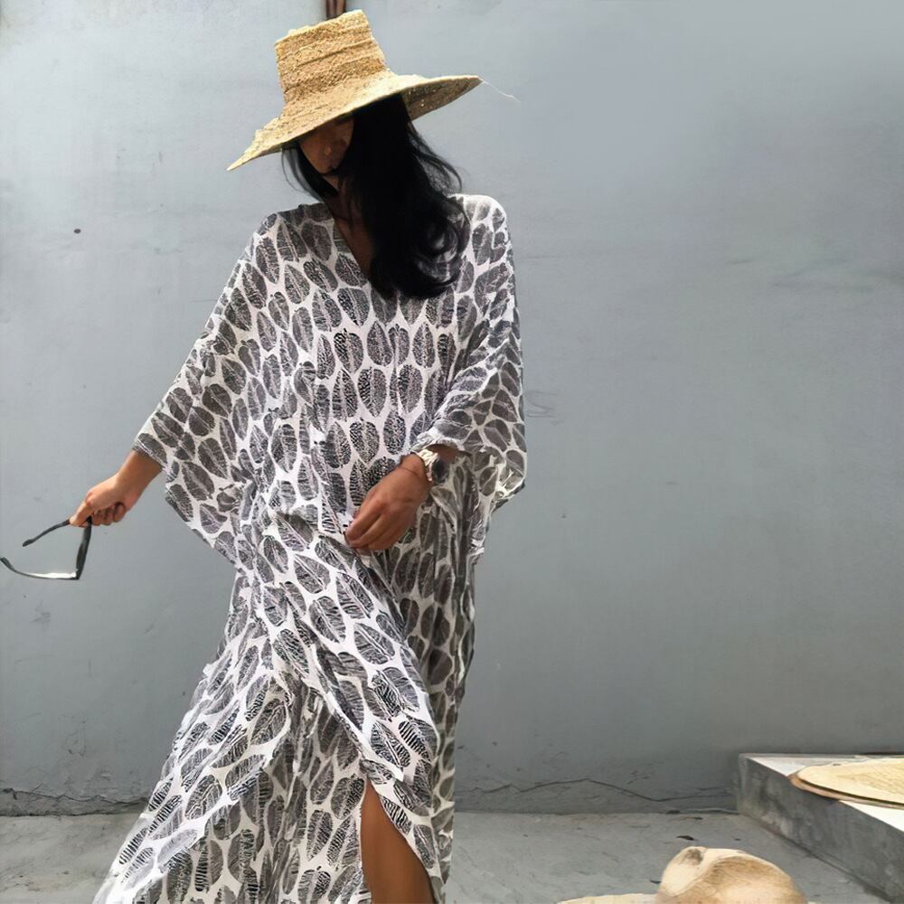 スイムウェア レディース 羽織り 半袖 ビーチカバーアップ Vネック ローブスタイル カジュアル 大人っぽい おしゃれ レトロ 存在感 個性的 リーフ リゾート 旅行 温泉 プール 夏 海 日除け スタイルカバー ワンサイズ ブラック レッド ブラウン グレー