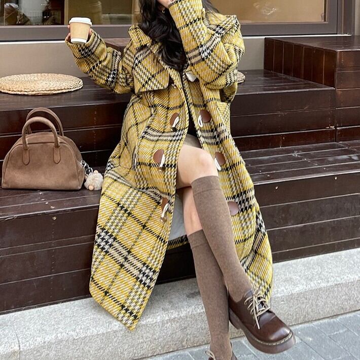 レディース コート アウター 上着 ロング 長袖 フード ポケット ボタン 大人可愛い きれいめ おしゃれ かっこいい ガーリー クール ナチュラル チェック 秋 冬 通勤 デート お出かけ お泊まり イベント 旅行 レストラン 公園 女子会 休日 ホテル ショッピング コンサート ライブ カフェ 韓国 コーデ 楽ちん 暖かい 防寒 プレゼント 普段使い 着回し モテ インスタ映え S M L イエロー