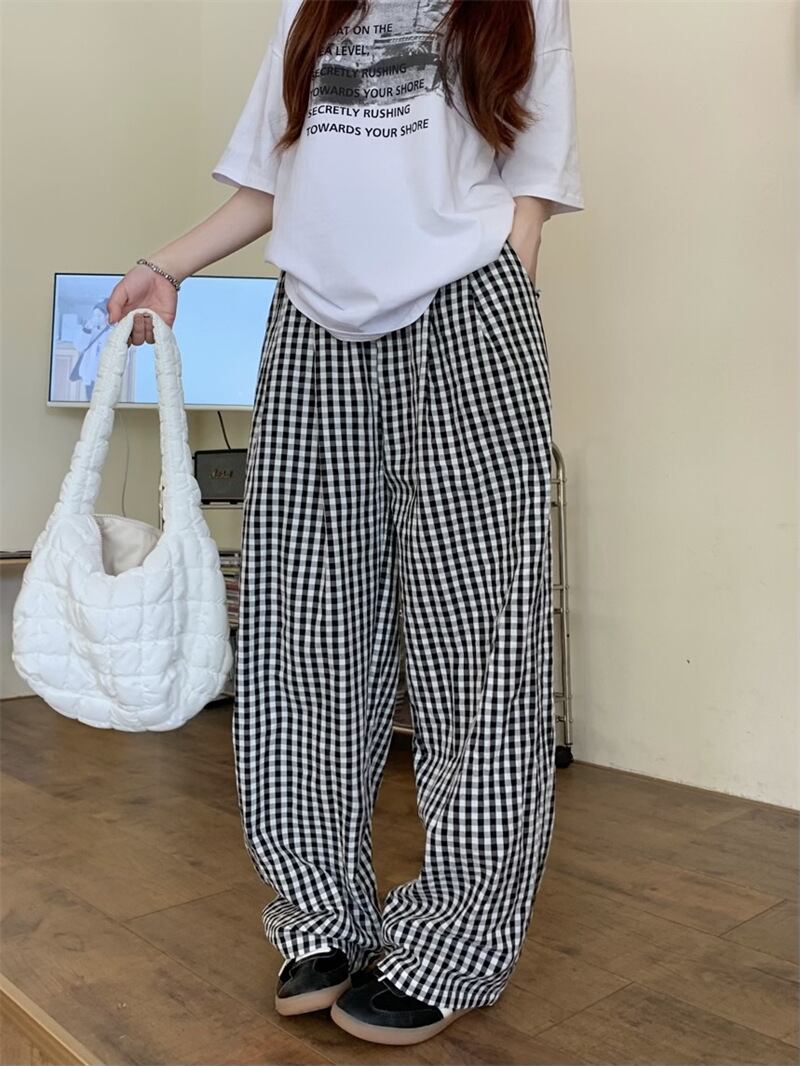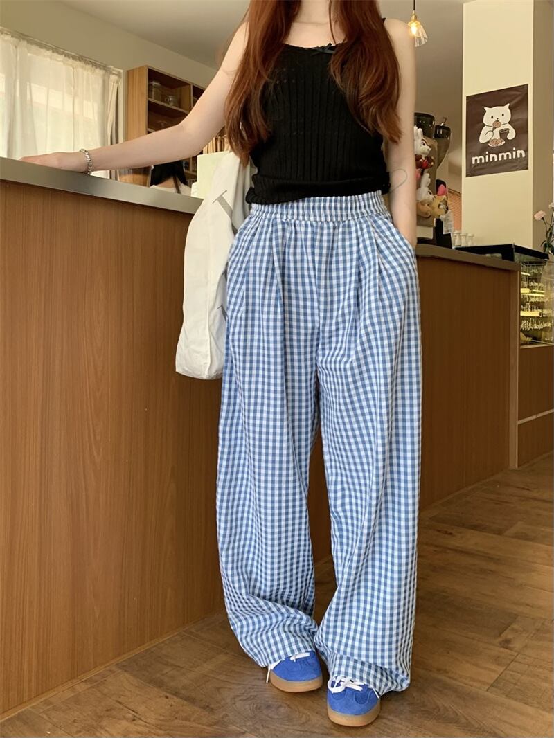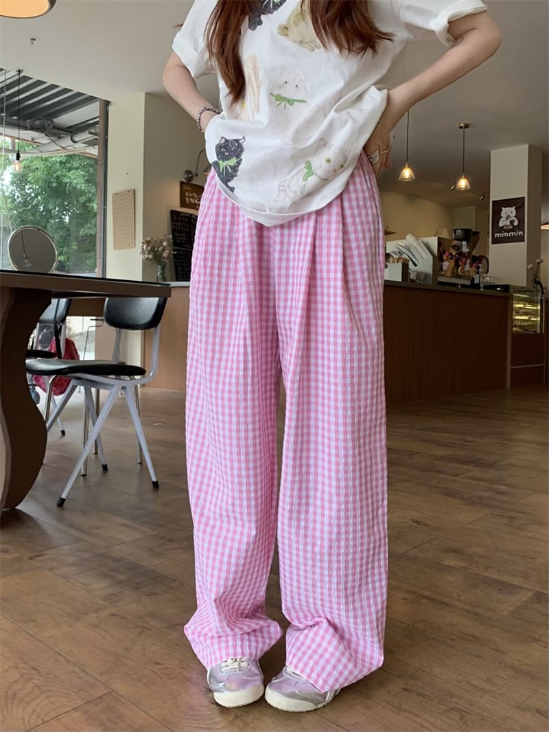 レディース パンツ ボトムス ワイドパンツ 丈長 ワイド ポケット ハイウエスト ウエストゴム かわいい 大人可愛い カジュアル おしゃれ ガーリー 存在感 キュート ナチュラル チェック 春 夏 ママ 通勤 学生 学校 通学 デート お出かけ 旅行 海 プール ビーチ 公園 女子会 休日 ショッピング お花見 カフェ 普段使い 着回し M L XL ブラック ピンク パステル ライトブルー 春カラー