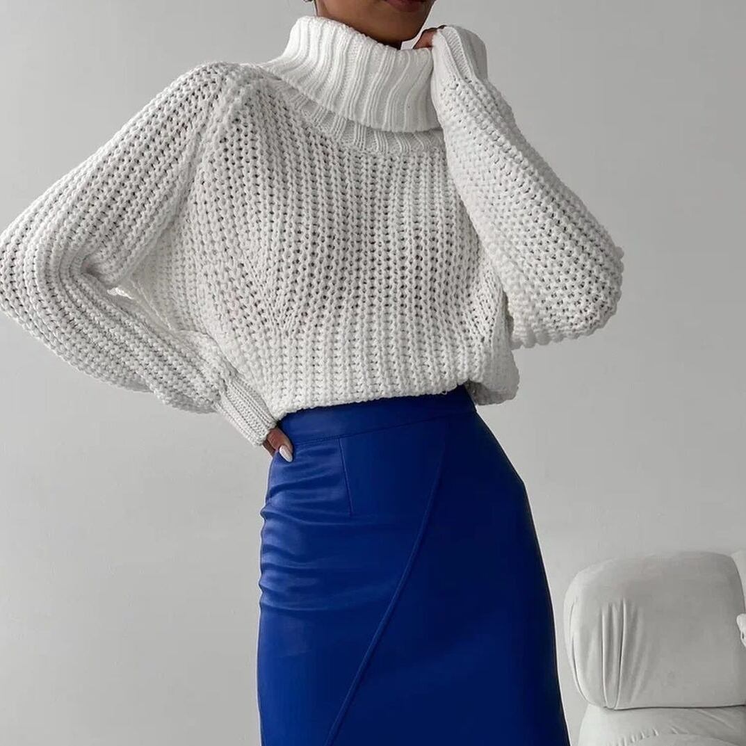 こちらのタートルネックプルオーバーは、ミディアム丈で、オフィスでもデートでも使える大人可愛いアイテムです。