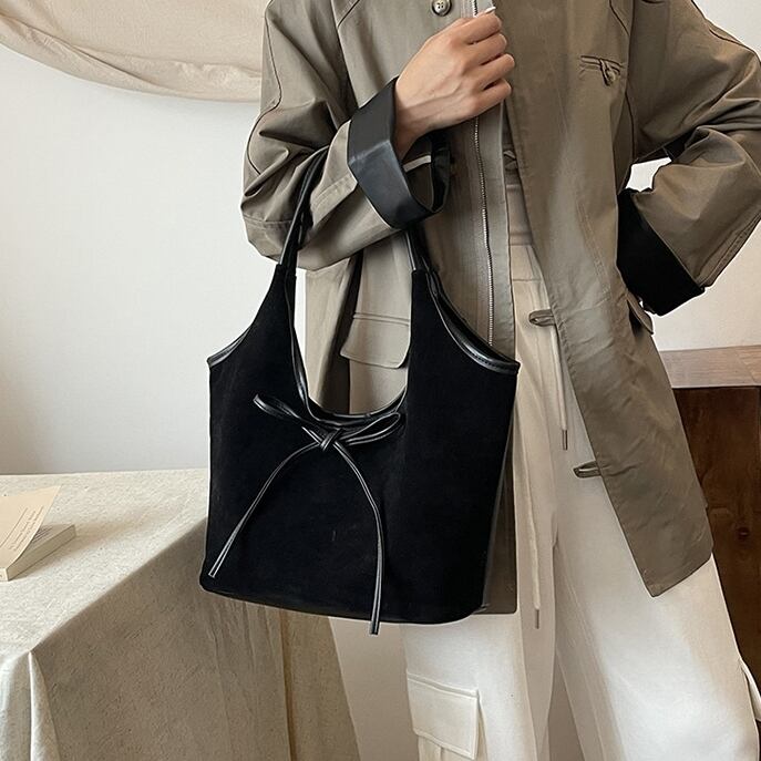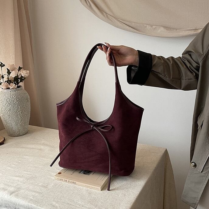 スクエア型の形状にリボンがアクセントとなり、大人可愛い印象を引き立てます。