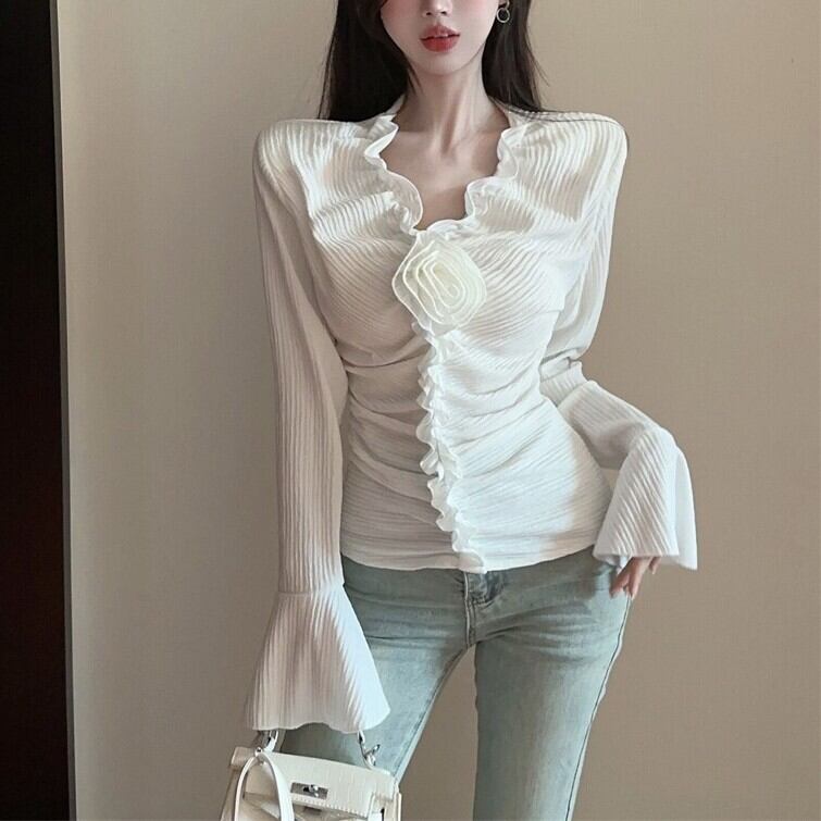 レディース トップス シャツ 長袖 Vネック スリム プリーツ 大人可愛い きれいめ おしゃれ かっこいい ガーリー クール 都会的 ロマンティック 無地 春 秋 通勤 デート お出かけ お泊まり イベント 旅行 レストラン 公園 女子会 休日 ホテル ショッピング コンサート ライブ カフェ 韓国 コーデ 楽ちん プレゼント 普段使い 着回し モテ インスタ映え S M L ホワイト ブラック ピンク