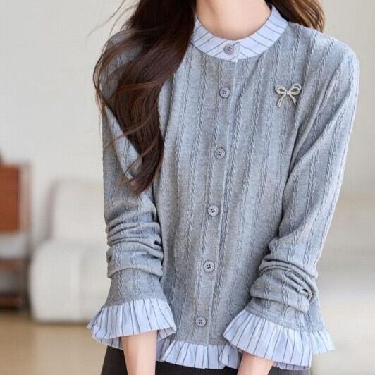 レディース トップス カーディガン 長袖 クルーネック ボタン 大人可愛い きれいめ おしゃれ かっこいい ガーリー クール ナチュラル ストライプ 春 秋 通勤 デート お出かけ お泊まり イベント 旅行 レストラン 公園 女子会 休日 ホテル ショッピング コンサート ライブ カフェ 韓国 コーデ 楽ちん プレゼント 普段使い 着回し モテ 清楚 インスタ映え S M L XL 2XL 大きいサイズ グレー