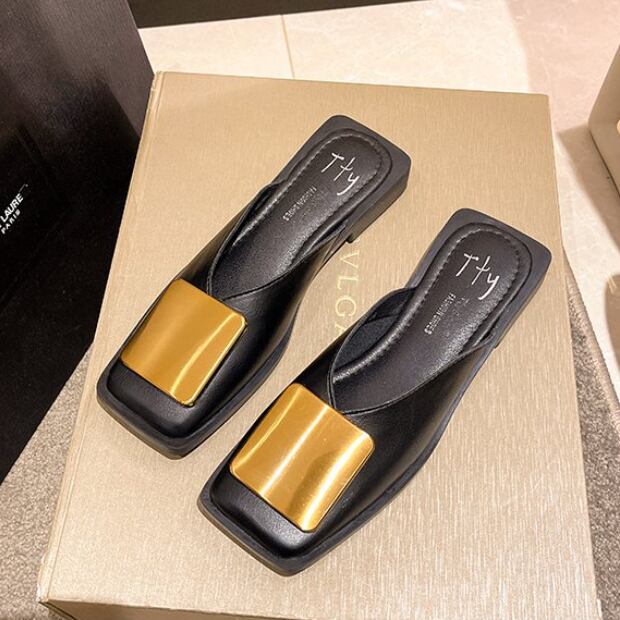 レディース スリッポン サンダル ぺたんこサンダル 3cm ぺたんこ スクエアトゥ メタリック ビスコースシューズ 厚手 人工PU シンプル おしゃれ かっこいい エレガント 存在感 無地 夏 OL 通勤 デート お出かけ リゾート 旅行 公園 休日 普段使い 22.5cm 23.0cm 23.5cm 24.0cm 24.5cm 25.0cm 黒 茶色 ベージュ