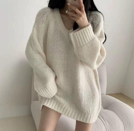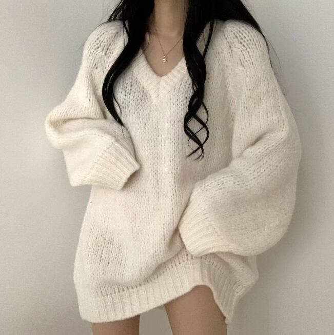 レディース トップス ニット セーター プルオーバー 丈長 長袖 萌袖 Vネック 襟なし ワイド 大人可愛い シンプル カジュアル おしゃれ こなれ感 ラフ エレガント 主役級 存在感 ラブリー キュート 都会的 ベーシック ロマンティック ナチュラル 無地 秋 冬 デート お出かけ 女子会 休日 カフェ 体型カバー 普段使い 着回し モテ トレンド 流行 インスタ映え 定番 S M L XL 2XL 3XL 4XL 5XL サイズ豊富 ホワイト グレー カーキ ライトブルー ベーシックカラー 大人カラー
