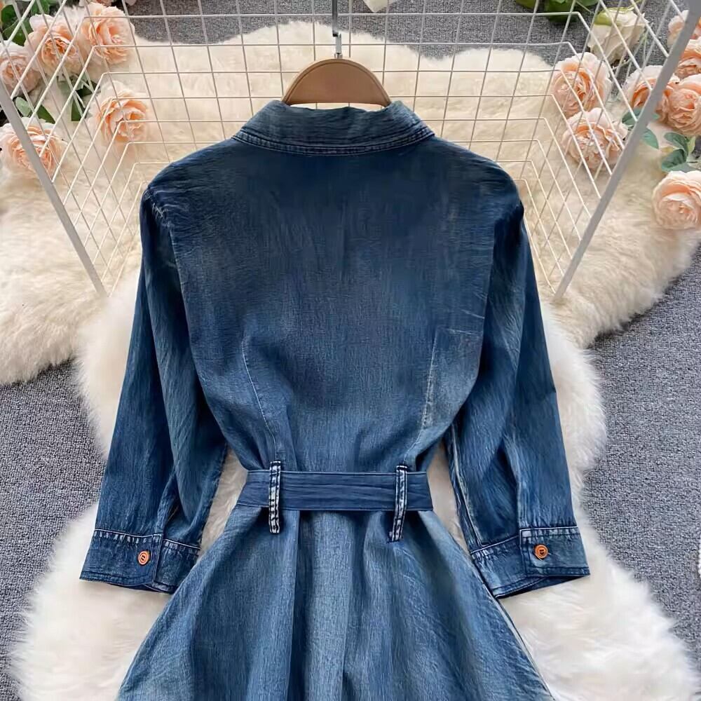春秋にぴったりなレディースデニムワンピース。ミディアム丈で大人可愛い印象が漂います。長袖とポロカラーがあり、フレアAラインのデザインが女性らしさを引き立て、裾ワイドがおしゃれさをプラス!デニム素材は中厚手でありながらも、刺繡が施されており、個性的で存在感抜群です。