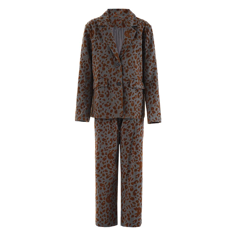 2点セット セットアップ スーツ パンツスーツ ジャケット 長袖 襟付き 前開き ボタン ロングパンツ ハイウエスト ストレートパンツ かわいい 大人可愛い きれいめ シンプル 上品 おしゃれ レトロ かっこいい カジュアル こなれ感 個性的 主役級 存在感 抜け感 ベーシック ナチュラル メンズライク フォーマル ヒョウ柄 女性用 レディース OL 通勤 デート お出かけ お泊まり 女子会 旅行 休日 カフェ ショッピング コンパ 普段使い デイリー イベント 着回し 脚長 S M L トレンド モテ