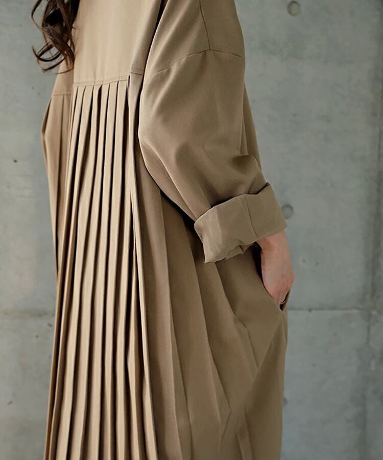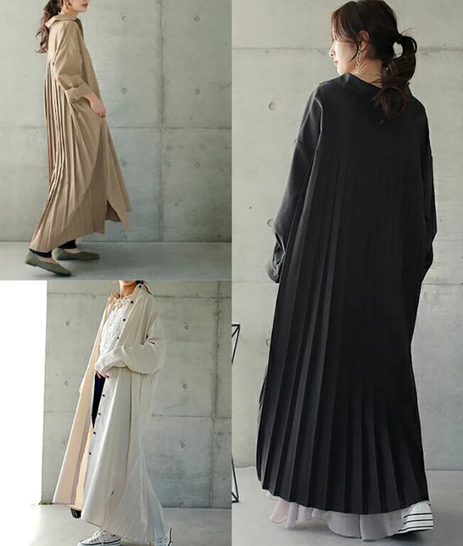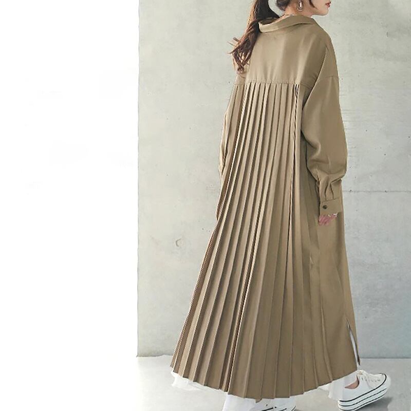 レディース ワンピース シャツワンピ ロングスカート ロング 長袖 レギュラースリーブ ポロカラー ワイド Aライン 裾ワイド シングルブレスト プリーツ タック 前開き ポリエステル繊維 大人可愛い カジュアル おしゃれ レトロ 個性的 存在感 無地 秋 冬 ロングシーズン デート お出かけ 女子会 休日 ガーデン ショッピング カフェ 重ね着 体型カバー 普段使い M L ブラック オフホワイト カーキ ダークグレー