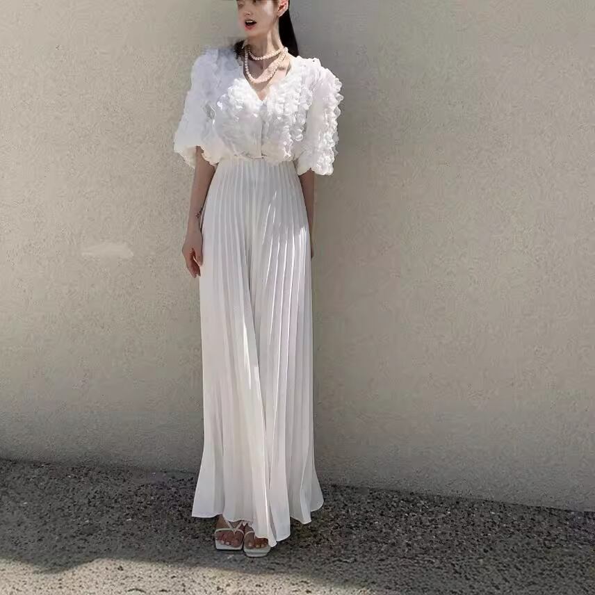 大人可愛いレディースワイドレッグパンツのご紹介です!ハイウエストデザインと裾ワイドのシルエットが特徴のこのアイテムは、春のお出かけにぴったり。ポリエステル繊維を使用しているため、軽やかで動きやすく、通勤やカフェ、ショッピングなどさまざまなシーンに活躍します。プリーツタックがエレガントな印象を与え、個性的でありながらも、どこかレトロな魅力を感じさせる存在感は一度は着用していただきたい一品です。