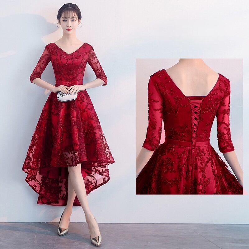 ドレス パーティー 披露宴 演奏会 発表会 膝丈 7分袖 レギュラースリーブ Vネック ラウンドネック ワンショル プリンセスライン アシンメトリー レース 刺繍 チュール 伸縮性 ポリエステル繊維 スパンデックス きれいめ 上品 おしゃれ 存在感 エレガント 花柄 刺繍 パーティー イベント リゾート 旅行 XS S M L XL 2XL 黒 ピンク ネイビー シャンパン ライトグレー レッド