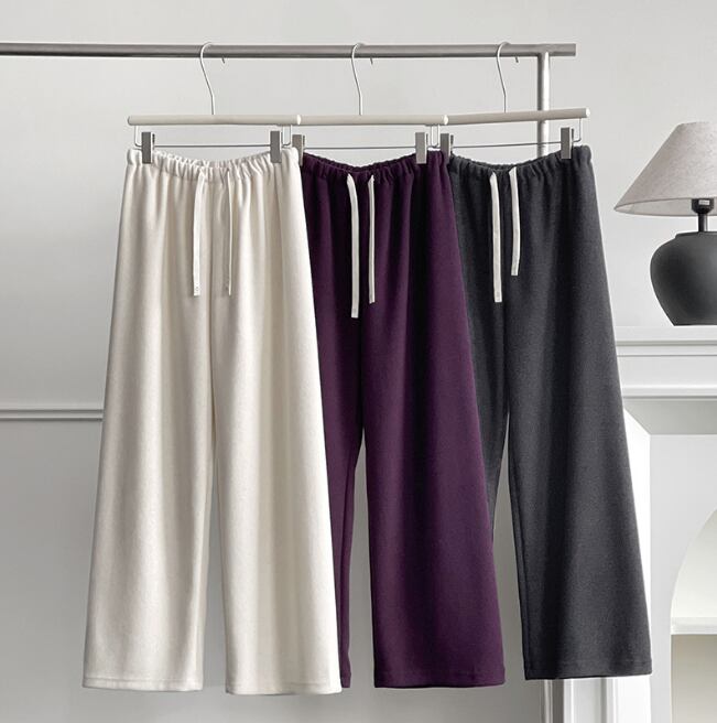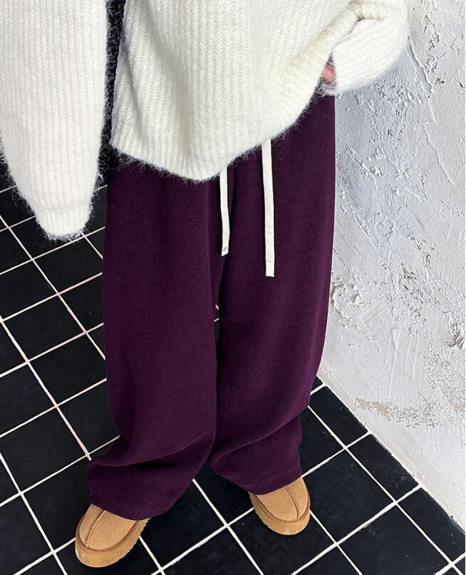 レディース パンツ ボトムス スウェット 部屋着 ロングパンツ ワイドパンツ ワイド ストレート ストリート ハイウエスト ウエストゴム きれいめ シンプル カジュアル おしゃれ こなれ感 ラフ ルーズ クール モード系 モダン 主役級 存在感 都会的 ベーシック ナチュラル 無地 秋 冬 お泊まり 休日 モノトーン 普段使い 着回し トレンド 流行 インスタ映え 定番 M L ゆったり ダークグレー オフホワイト ベーシックカラー 大人カラー パープル カラバリ