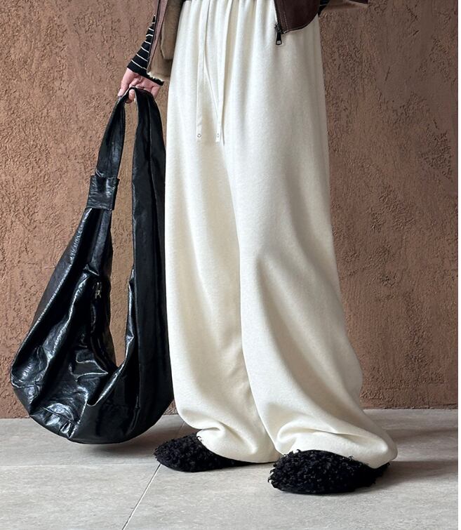 ゆったりとしたシルエットが魅力のワイドスウェットパンツ。
