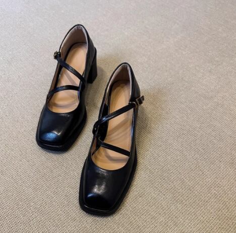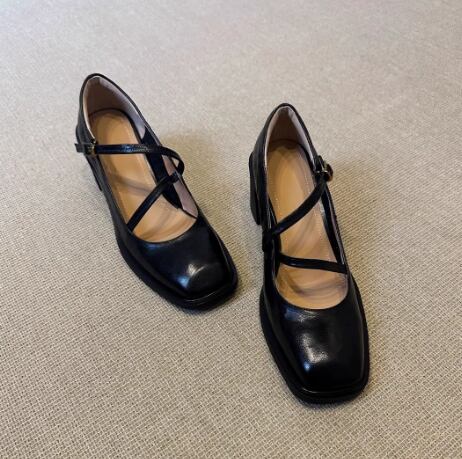 クラシカルな雰囲気漂うスクエアトゥパンプス。