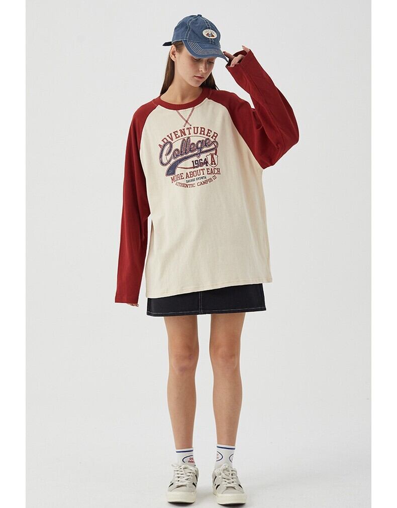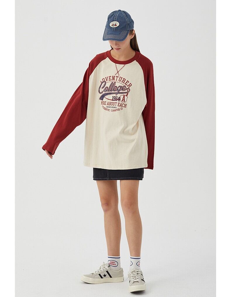 レディース トップス ロンT カットソー 丈長 長袖 クルーネック ラグラン オーバーサイズ 裾ワイド ストリート バイカラー かわいい カジュアル おしゃれ かっこいい こなれ感 ラフ メンズライク ボーイッシュ ガーリー ルーズ キュート ベーシック ナチュラル ロゴ 春 秋 ペア 男女兼用 ユニセックス ママ カップル 学生 学校 通学 デート お出かけ 旅行 公園 女子会 休日 ショッピング ライブ お花見 カフェ 普段使い 着回し M L XL ホワイト イエロー ベージュ 春カラー 秋カラー
