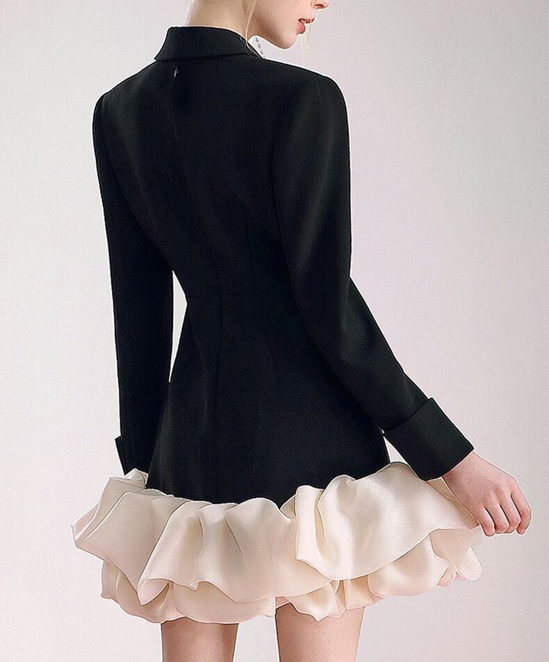 大人可愛いを手に入れたこのワンピースは、ミニ丈のスーツワンピース。