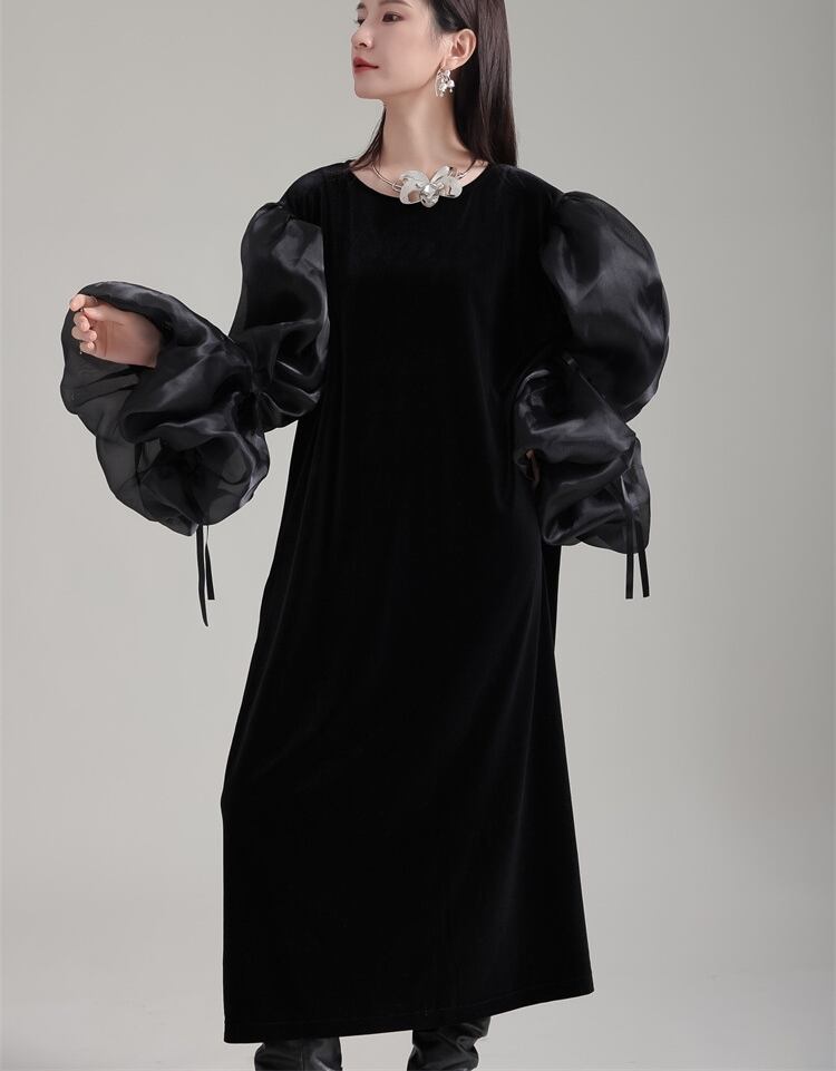 ワンピース ロングワンピース 長袖 ボリューム袖 ストレートスカート シースルー 異素材ミックス 可愛い かわいい 大人可愛い きれいめ シンプル 上品 おしゃれ レトロ かっこいい カジュアル こなれ感 個性的 主役級 存在感 抜け感 秋 冬 ベーシック ナチュラル エレガント フォーマル 無地 女性用 レディース ママ デート お出かけ お泊まり 女子会 旅行 休日 カフェ ショッピング コンパ パーティー 二次会 普段使い デイリー イベント 着回し 重ね着 脚長 ワンサイズ トレンド モテ