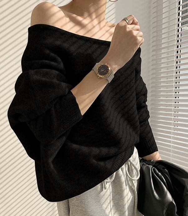 トップス セーター 長袖 ワンショルダー プルオーバー ショート丈 アシンメトリー かわいい 可愛い 大人可愛い きれいめ シンプル 上品 レトロ おしゃれ かっこいい カジュアル こなれ感 個性的 主役級 存在感 抜け感 春 夏 ベーシック ナチュラル クール エレガント 無地 女性用 レディース ママ OL 通勤 オフィス 学生 通学 デート お出かけ お泊まり 女子会 旅行 休日 カフェ ショッピング コンパ イベント 普段使い デイリー 着回し 重ね着 ワンサイズ トレンド モテ ゆったり